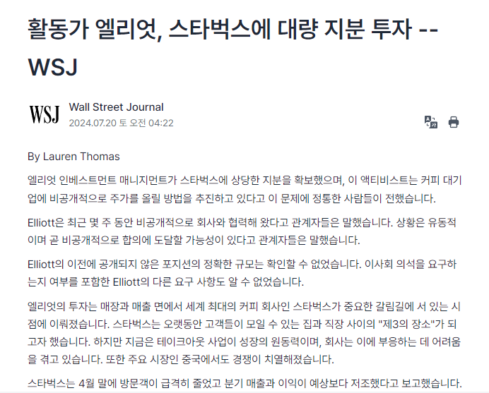 그런데?! 엘리엇 이 넘들이 나보다 한 발 빨리 갑자기 등장하여 지분 매수를 했다는 News.... ㅠ