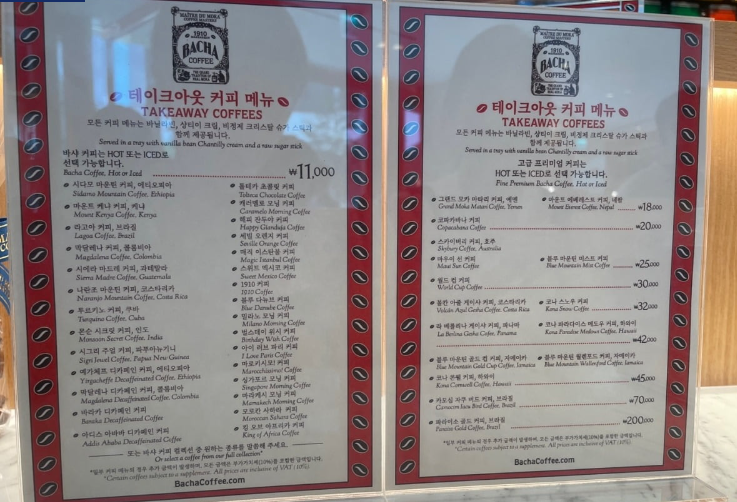 기본 커피가 16,000원 / 제일 비싼 커피가 480,000원 ?!?!!?!