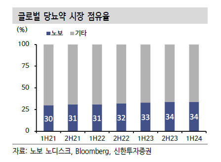노보 노디스크는 전 세계 당뇨병 시장 점유율 약 34%의 엄청난 영향의 기업