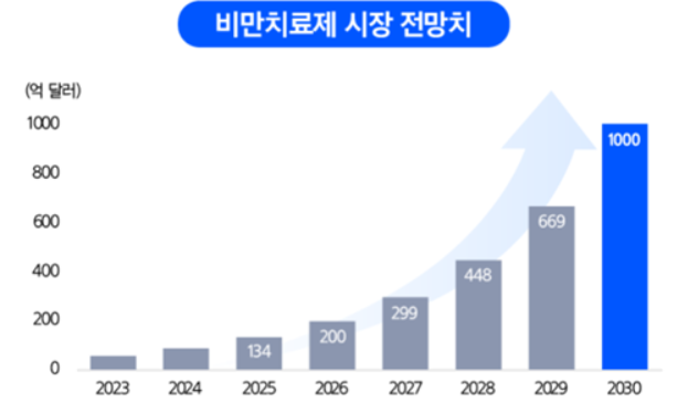 일단 전체 시장 TAM이 말이 안될정도로 크다. 근데 비만 치료약 시장은 이제 개방이 시작됬다고 봐도 무방하다. (전 세계 8억 명의 비만인구)