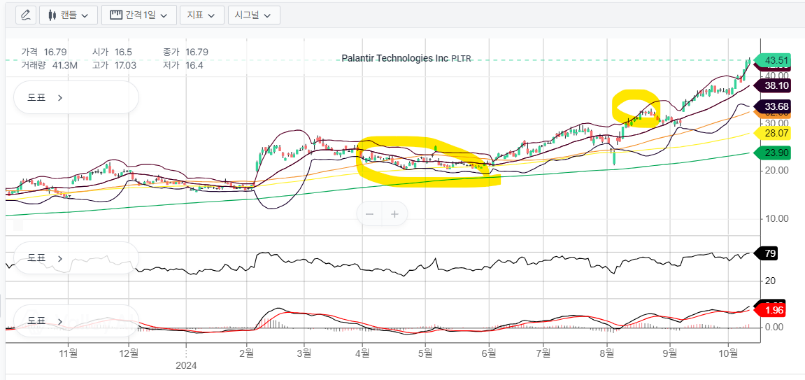 • 그도 그럴것이 최근 위기없이 볼린저 밴드 상단선을 뚫고도 더 올라가는 중이다.