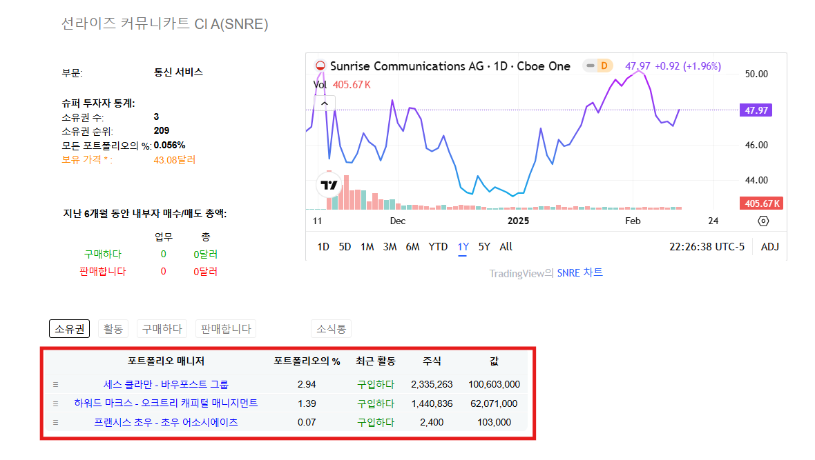 이번 분기 무려 3명이나 이 기업을 '신규 매수' 했다는 점. 가격만 맞다면 한 번 알아볼 필요성이 있어보인다.
