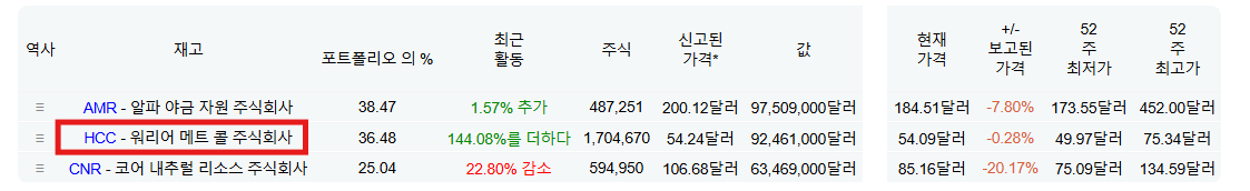 HCC라는 기업 비중이 더 크게 확대 됨.