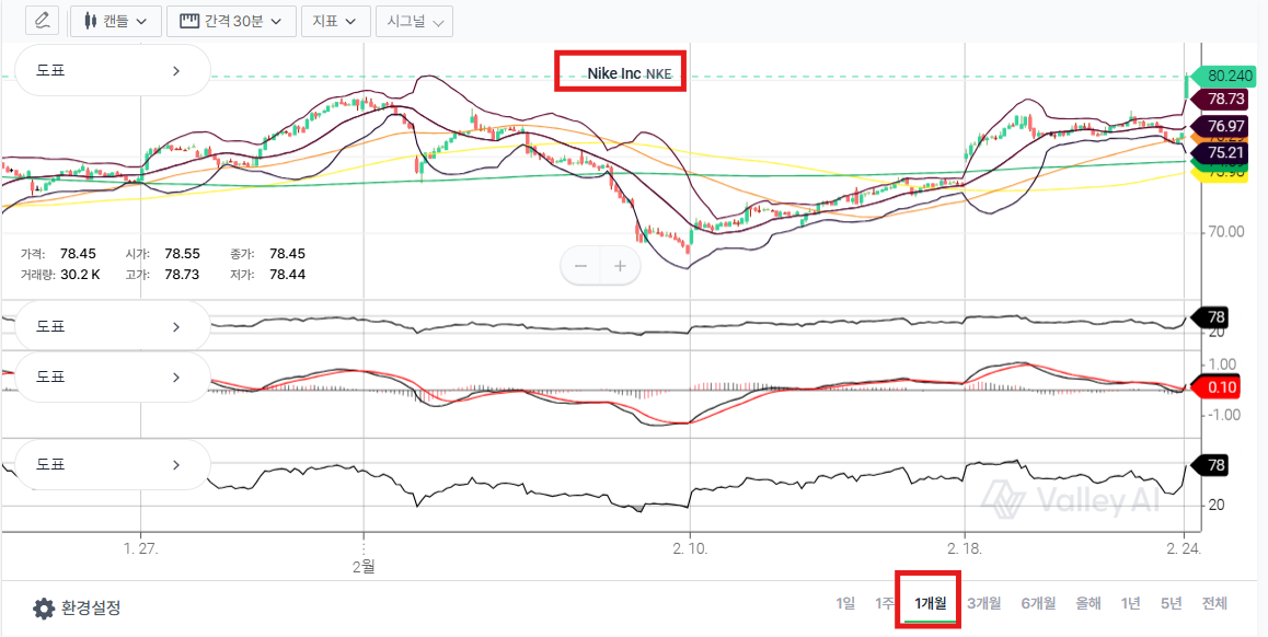 현재 나이키가 5% 가량 혼자 폭등 중. 심지어 최근 상승세를 감안하면 진짜 진짜 많이 올랐다.