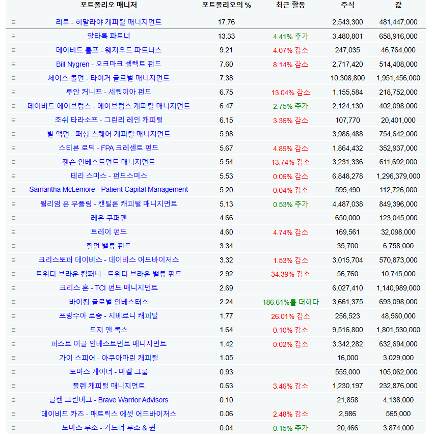 Guru들이 굉장히 많은 비중을 태우고 있는 종목