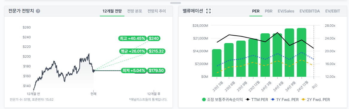 Valley AI 전문가 전망치 무려 51명의 최저값보다도 훨씬 낮은 현재 가격과 빅테크 TTM 벨류에이션이 PER 20.8