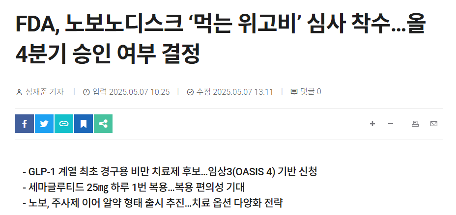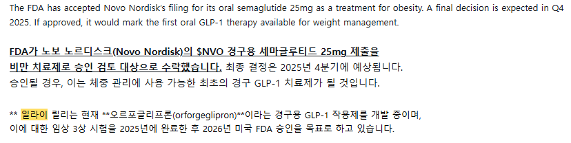 번외) 먹는 위고비 심사도 2025년 4분기 승인 여부 결정