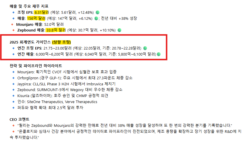 오늘 발표됬던 일라이릴리 실적은 정말 압도적이다.