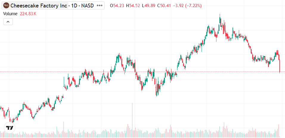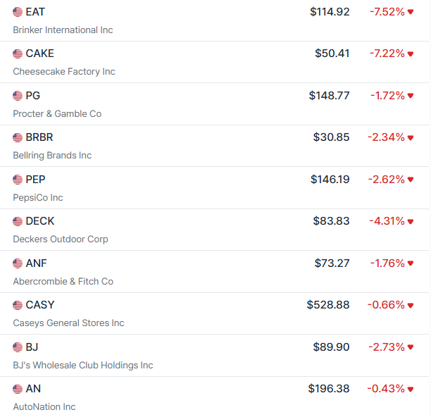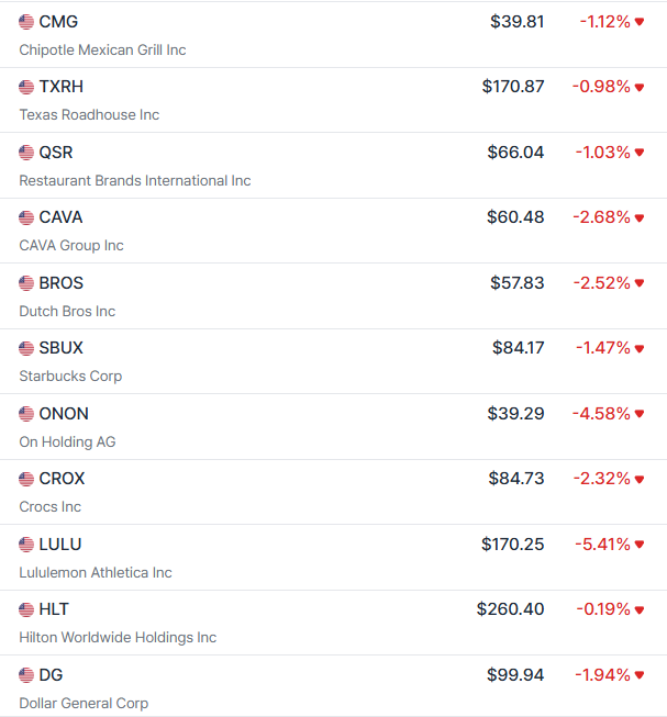 그리고 어제 동종업계 레스토랑 브링커 인터네셔널, 치즈케이크 팩토리가 실적에 따라 주가가 크게 내려갔다. 특히 인상적이었던 것은 브링커 인터네셔널의 실적은 좋았다고 느꼈고, 가이던스도 상향/하향 없이 재확인정도로 그쳤는데 저 정도로 떨어졌다는 점이다.