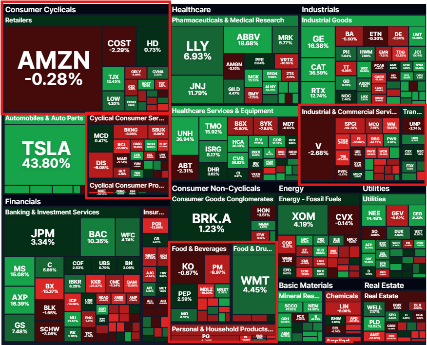 → 지수가 올라가더라도 오로지 빅테크, 반도체, AI 관련 대형 기업들의 지수 올리기일뿐 소비재 주식들은 박살났다. 그러면서 지수 떨어질때는 빅테크보다 두 배로 하락한다. (엉망인 손익비)