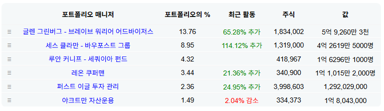 주요 투자자 : 세스 클라만, 글렌 그린버그