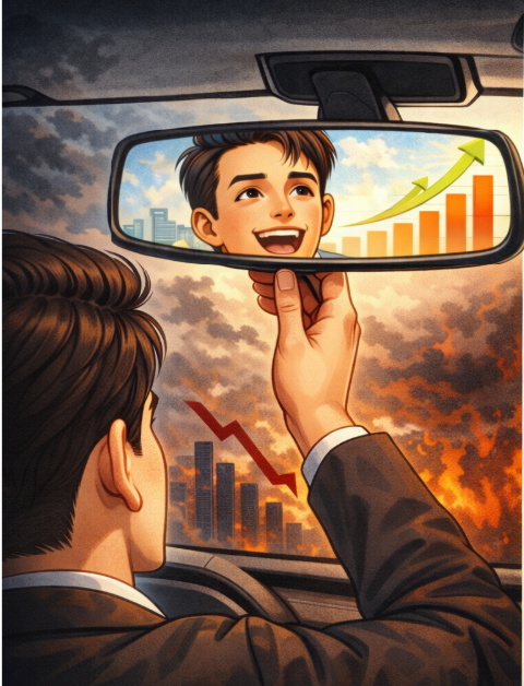 그러니까 앞은 안 보고 백미러만 보고 운전하는 격이라는 거예요.