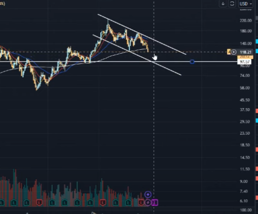하락세가 아직 멈추지 않음. 100이하까지도 기다려야함.