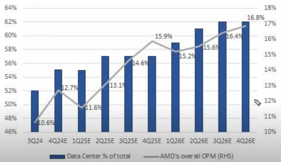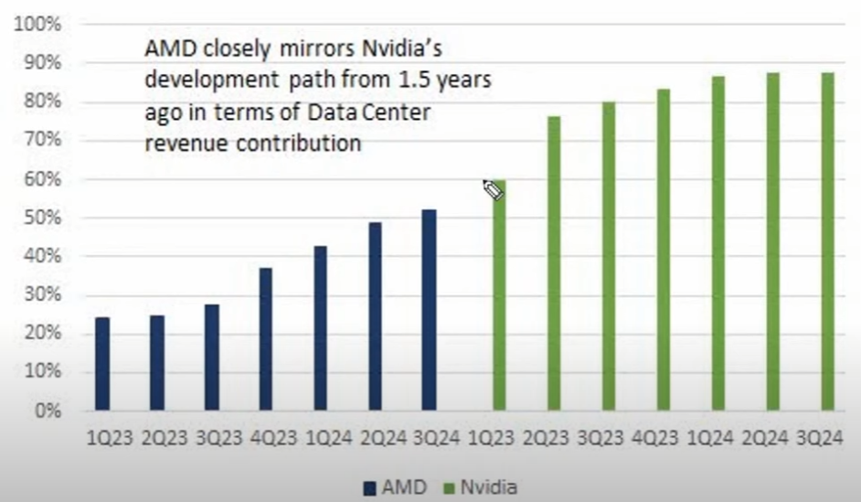 데이터 센터 측면에서 보면 NVDA보다 1.5년정도 늦음. 장기적으로는 좋은 형태