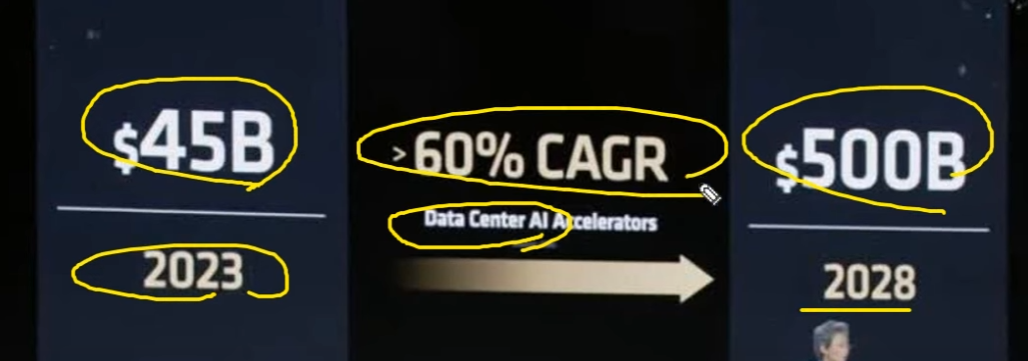데이터 센터 매출이 28년까지 500B가 될 것이므로 CAGR 60% 기대중