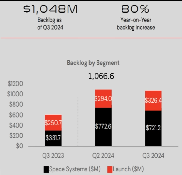 24 3Q에 1.05B의 백로그가 있음 69%는 우주시스템, 31%는 발사 서비스임.