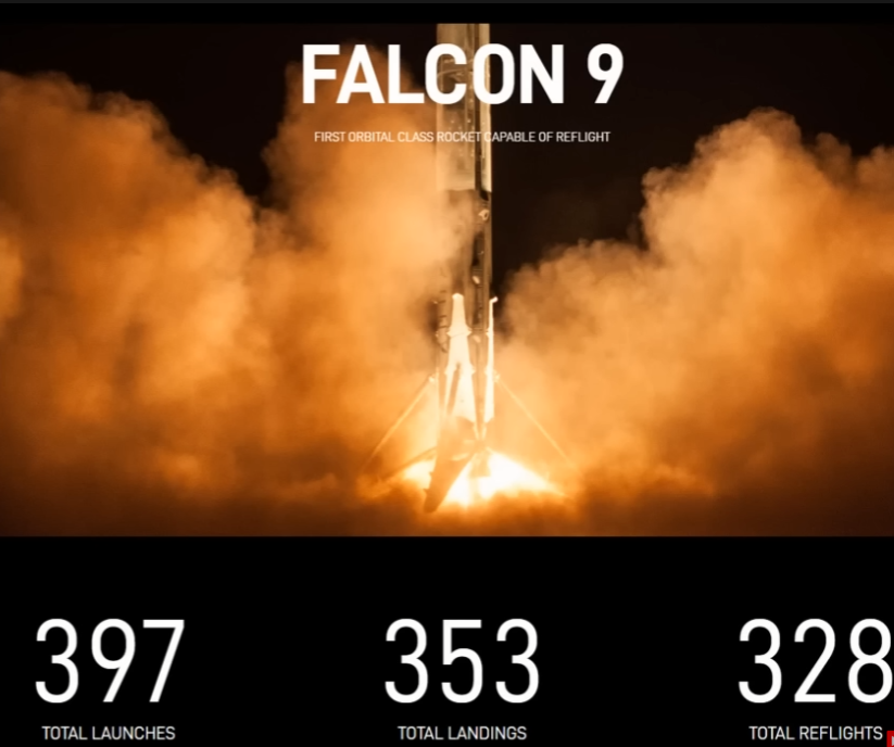 397회 발사, 353회 지구로 도착, 328회 재사용