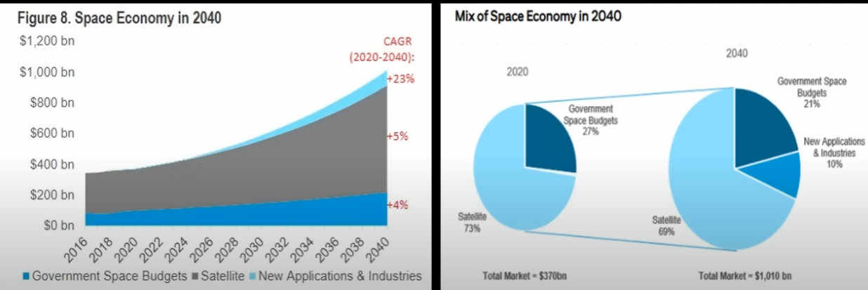우주 산업 TAM은 2020년에 370B -> 2040년에 1010B 로 확장될 것으로 예측중