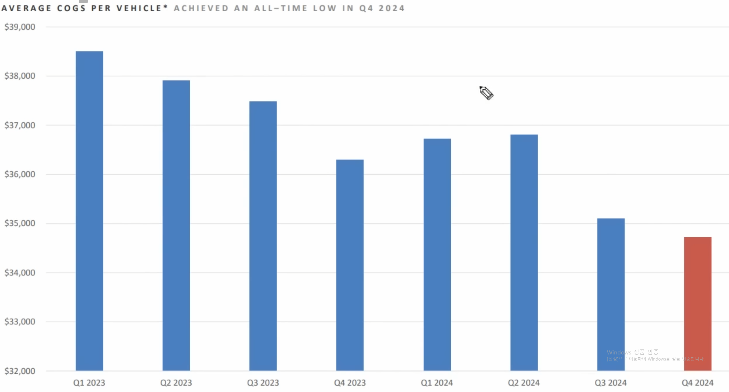 차량 한대당 생산단가 COGS는 줄어들고 있는 모습
