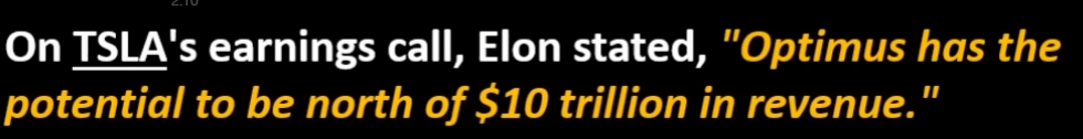 어닝콜에서 일론이 직접 옵티머스가 10T의 매출을 이룰 것이라 얘기했음