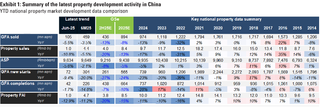 2025년 6월 1차 시장 규모와 건설 활동은 예상보다 강했음. 7월에 1차 시장은 YOY 감소폭이 축소될것이며, 2차 시장은 YOY 감소폭이 확대될 것임. 7월말에 예정된 정치국 회의에서 발표된 부동산 관련 정책에 주목해야함.