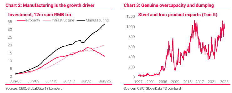 제조업 투자는 2019년 이후 45% 증가했고 이는 명목 GDP의 25%에 해당함. 투자와 신용의 수요를 견인할 동력이 없이 제조업만 성장함.