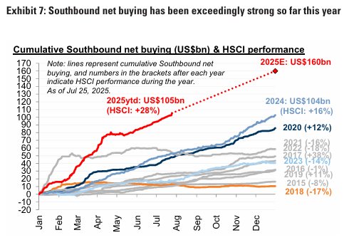 사우스바운드(Southbound)는 이 번 주 76억 달러의 자금 유입을 기록했으며, 2025년 사우스 바운드 자금 유입 전망치를 1,100억 달러에서 1,600억 달러로 상향 조정