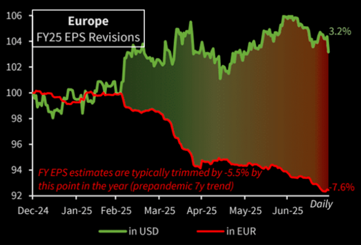 유럽의 2025 회계연도 Forward EPS 수정치는 나빠지고 있음