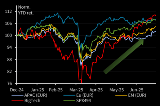 유럽 주식은 훌륭한 거래였지만, 이를 구조적인 측면으로 보기는 어려움. 유럽 주식이 1,2분기 이상 미국 주식을 압도하는 경우는 ㄷ드물었음.