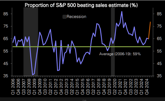 실적 비트를 하는 기업 비율