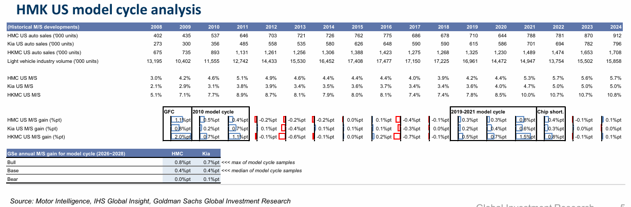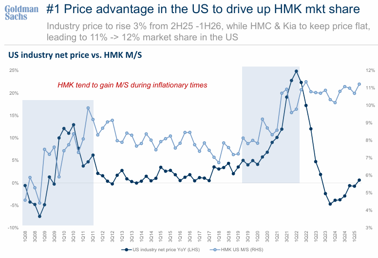 업계 가격은 25 2H ~ 26 1H 동안 3%의 가격 상승이 있을것이나, 현대, 기아는 가격을 동결하기로함.