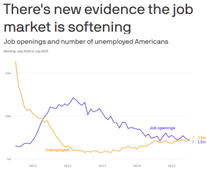 불과 한 달 전만 해도 0.25% 인하 여부를 논하던 상황에서, 몇 주 만에 50bp 인하 기대감이 커진 것은 고용 지표 악화 때문이다.