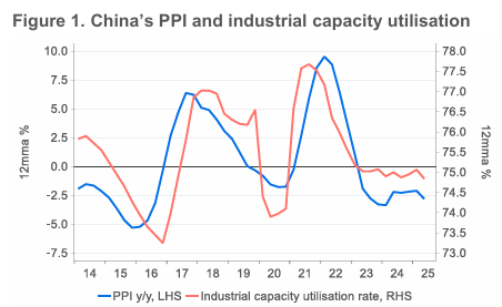 • PPI 하락은 단순한 수요 충격이 아님. 설비가 유휴 상태(수요 대비 과잉공급)라는 구조적 신호.