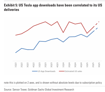 미국 내 Tesla 앱 다운로드 수(표 5)를 분석한 결과, 이 데이터는 과거에 Tesla 배송량과 방향성 상관관계가 있는 것으로 나타났음(단, 다운로드 대 배송량의 절대 비율은 시간이 지남에 따라 변했지만, Tesla의 다른 사업 및 중고차 판매 등의 요인에 의해 주도된 것으로 추정). 3분기 미국 내 앱 다운로드 증가율은 3분기에 가속화되었으며, 이는 소비자들이 IRA 크레딧 종료 전에 차량을 구매함에 따라 3분기 미국 내 배송량이 전년 동기 대비 증가할 수 있음을 시사함.