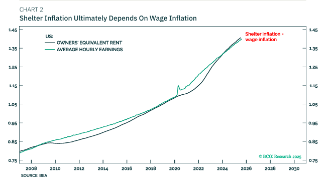 주거비는 궁극적으로 임금 인플레와 연결됨. OER은 렌트비를 따라가며, 렌트비는 임금으로부터 나옴. (chart2)