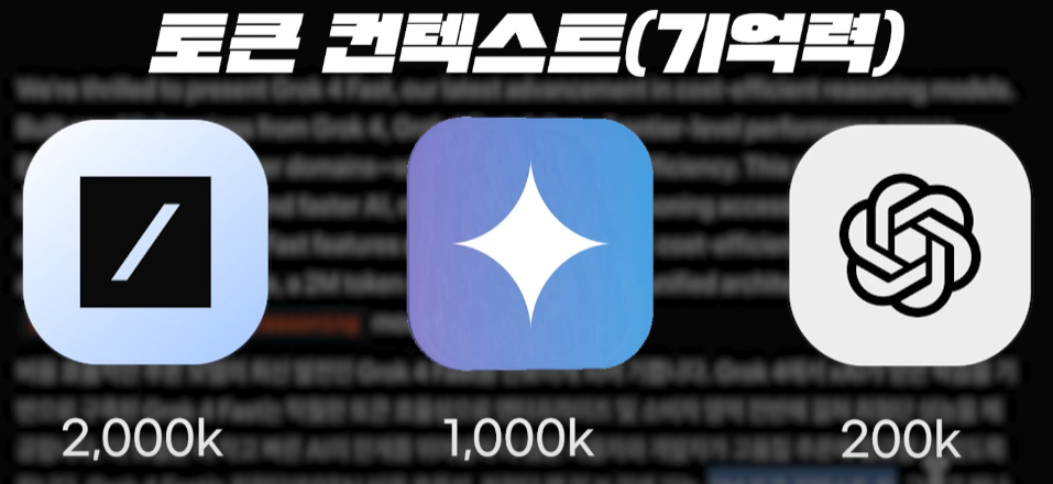 제미나이가 1M, ChatGPT가 20만, 그록 4 패스트는 2백만임.. 토큰이 길어져야 작업이 길어질때 일관성이 있으므로 복잡한 프로젝트를 수행할 수 있음.