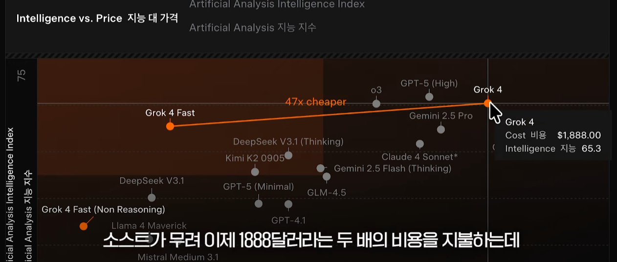 한편 X AI에서 Grok-4 fast 모델이 출시되었음.