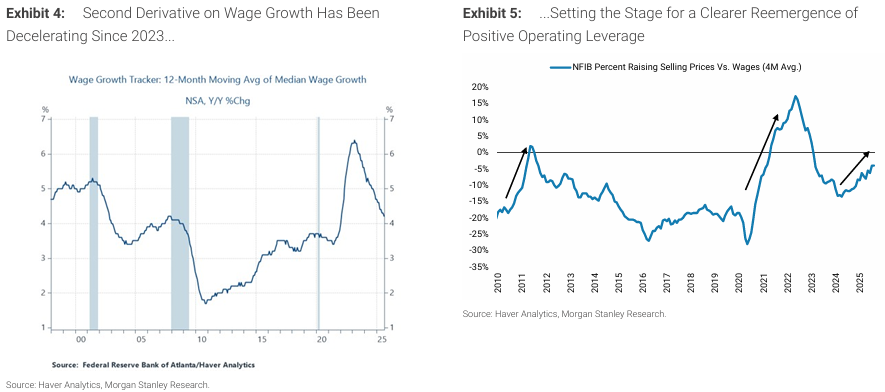 긍정적인 영업 레버리지(Positive Operating Leverage)가 기업 실적에 다시 기여하기 시작하는 조짐이 보였음. 이는 비-PMI(Non-PMI) 기반 실적 모델이 실적 개선을 가리키며 급격하게 상향하고 있다는 점에서도 확인됐음.