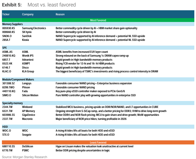 선호 종목: Top Pick으로 SanDisk와 KIOXIA가 이 주제를 주도할 것으로 예상됨.