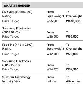 SK hynix: EW → OW 업그레이드 (Solidigm의 QLC NAND 기여 확대). EPS 및 목표주가 상향