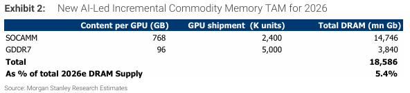 3) SOCAMM 수요는 Rubin GPU의 LPDDR5X 를 견인하며 2026년 전체 DRAM 공급의 5%를 차지할 것.