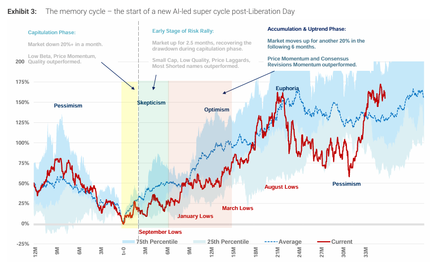 4월 저점을 시작으로, 강력한 AI 성장으로 새로운 기술 사이클이 시작됨. 이로 인해 2026년에는 수급 불균형이 발생할 것으로 예상되며, 메모리, 특히 DRAM에 대한 업계 전망을 상향 조정하고, ASML 과 SK하이닉스에 대한 투자의견을 '비중확대'로 상향 조정함.