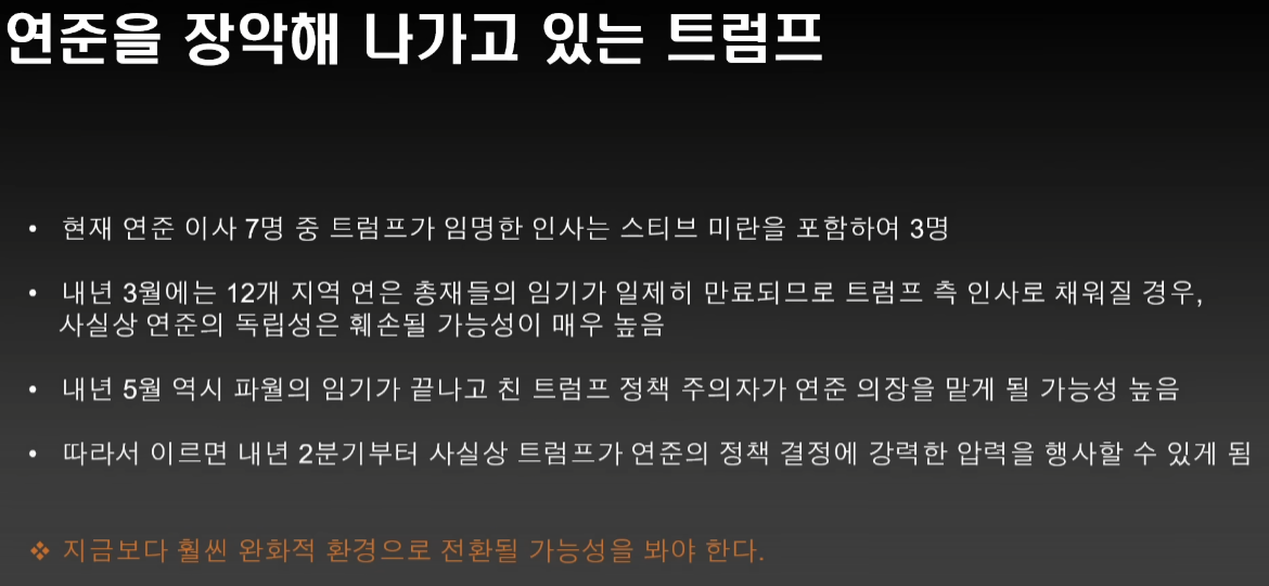 연준 이사 7명중 트럼프 측이 미란을 포함하여 3명 + 내년 3월 12개 지역 연은 총재 교체 + 파월 교체
