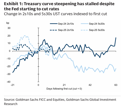• 과거 사례: 지난 9월(작년)의 첫 번째 금리 인하 이후 몇 달 동안 2년물 대 10년물(2s10s) 곡선은 횡보하고 5s30s 곡선은 평탄화되었으며, 이후에야 다시 스티프닝(Steepening, 가팔라짐) 압력이 재부상했음.
