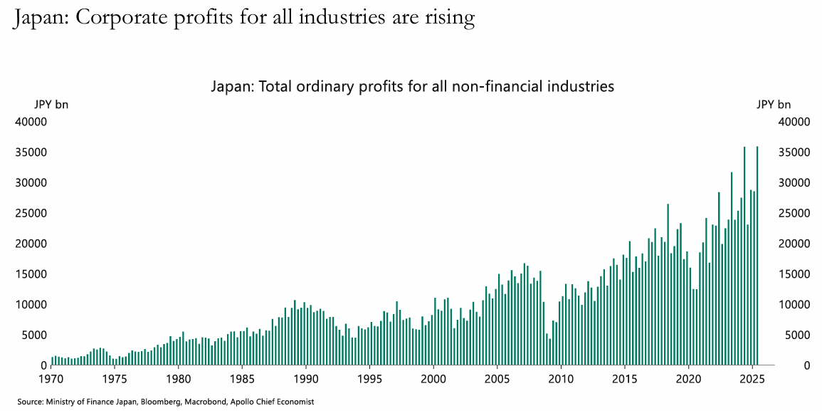 이는 일본 기업 부문의 전반적인 수익성이 개선되고 있음을 나타냄