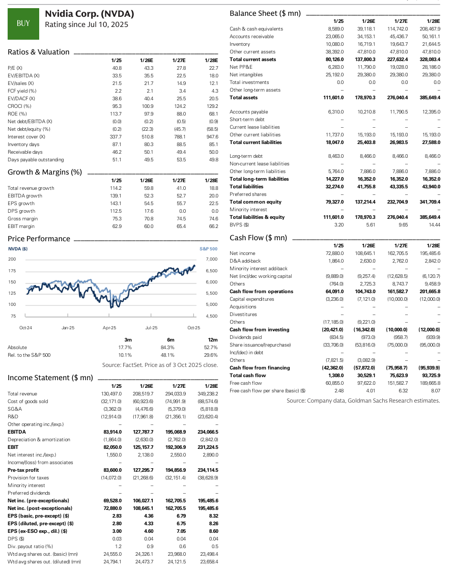 엔비디아의 2026년 추정치에 대해 상당한 상승 여력이 있을 것으로 보이며, "순환형" 거래가 2027년 예상 매출의 ~15% 미만을 차지한다는 점에서 위험/보상 측면에서 안정적이라고 판단됨. 핵심 고객으로부터의 강력한 성장 경로와 비전통적 고객으로부터의 상승 여력이 예상되며, 이에 따라 추정치와 목표 주가를 상향 조정함.