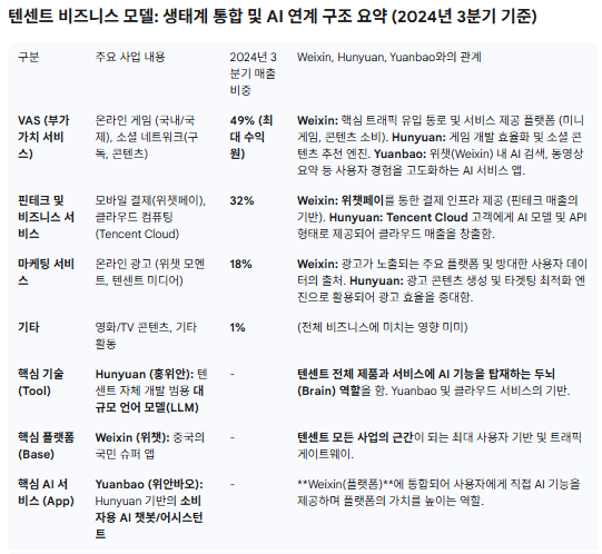 • AI 애플리케이션 프록시: Tencent는 고유의 WeChat 생태계와 글로벌 게임 자산을 기반으로 AI가 게임, 광고, 핀테크, 클라우드, 이커머스 등 전체 사업 부문을 강화함에 따라 중국 인터넷 내에서 최적의 AI 애플리케이션 프록시 중 하나로 평가됨.