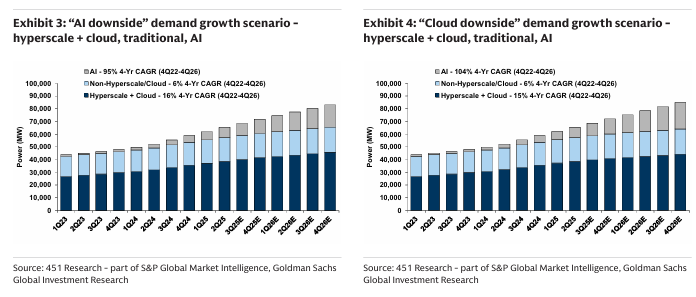 Exhibit 3: "AI 하락" 수요 성장 시나리오 & Exhibit 4: "클라우드 하락" 수요 성장 시나리오