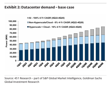 2030년 말까지 약 150 GW의 데이터센터 용량 (8억 3,900만 평방피트)이 온라인 상태가 될 것으로 추정되며, 이는 ~15%의 6년 CAGR에 해당됨.