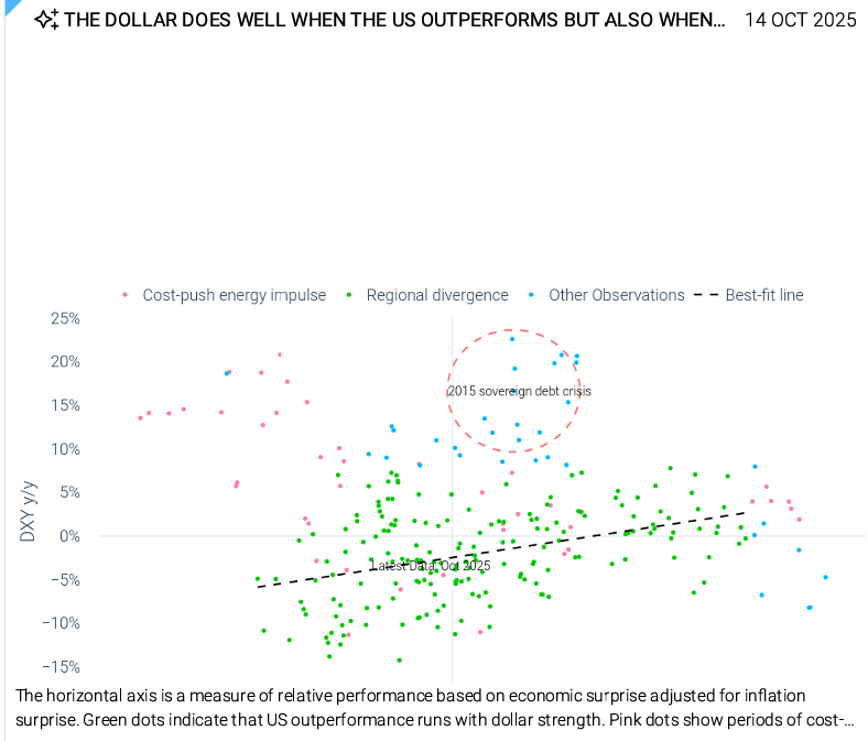 주식이 두 자릿수 상승을 기록했을 때 금이 주식보다 이토록 크게 초과 성과를 내는 것은 매우 이례적임. 최근 수십 년간의 유일한 전례는 2006년 중반이었음.